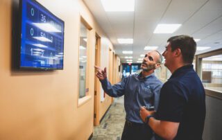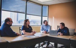 Wolf Consulting offers its team members a challenging and rewarding work experience, in a friendly team environment. In 2015 we moved to our current office in the William Penn Plaza office building in Monroeville. Our office suite was professionally designed and successfully blends both form and function. With warm colors, an open collaborative environment, and large glass windows to allow natural light and outside visibility, our new office is unique to our industry. We’re operate on a hybrid work model, with most of our staff coming into the office a few days per week. Our building is conveniently located just a ¼ mile from both the Turnpike and Parkway East. The deli in the building lobby offers fresh salads, soups, and sandwiches, and we are within walking distance of two restaurants. And we offer free covered parking – great for hot summer days and snowy winter days!